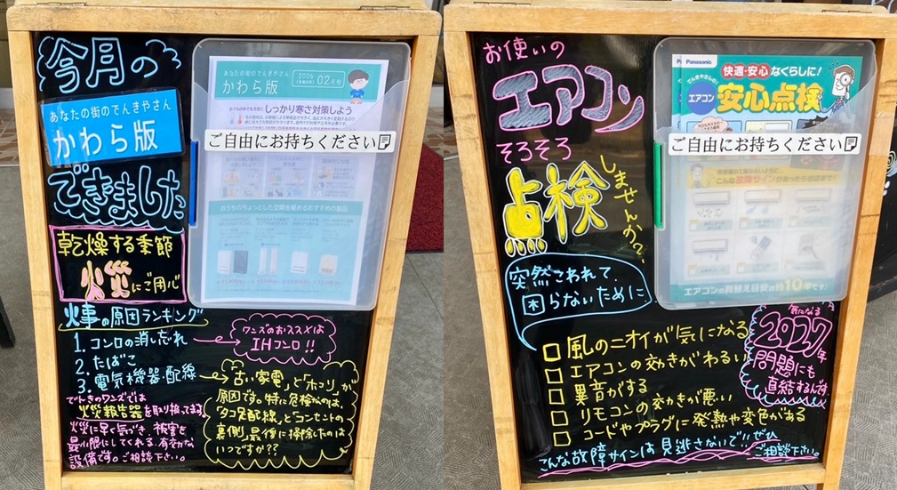 今月も店頭の黒板を更新しましたので、お気軽にお立ち寄りいただき、黒板チラシラックからご自由にお持ちください👏☺️
